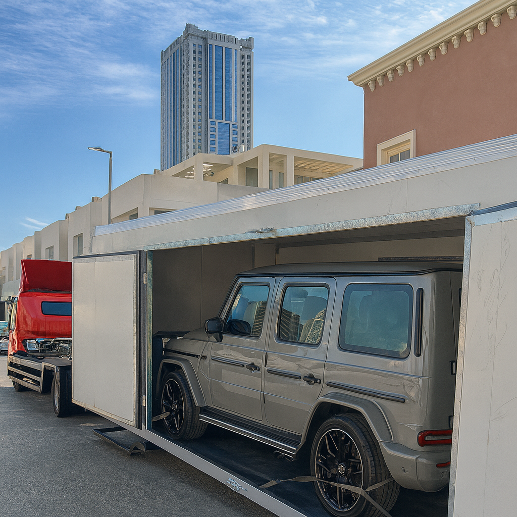 خدمة احترافية مخصّصة لنقل السيارات بالسطحة المغلقة بين مدن المملكة، لحماية سيارتك من الغبار، الأمطار، والخدوش مع متابعة مستمرة طوال الرحلة.